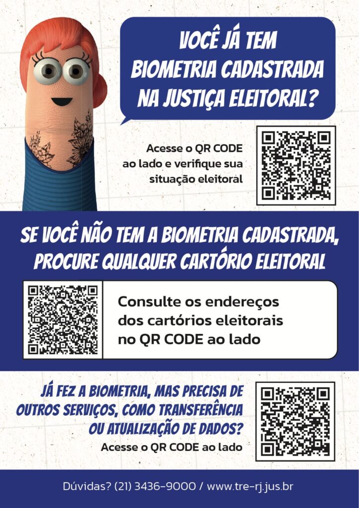 Para conhecer e escolher um dos 183 pontos de coleta de biometria: https://www.tre-rj.jus.br/comunicacao/noticias/2024/Janeiro/vemprabiometria