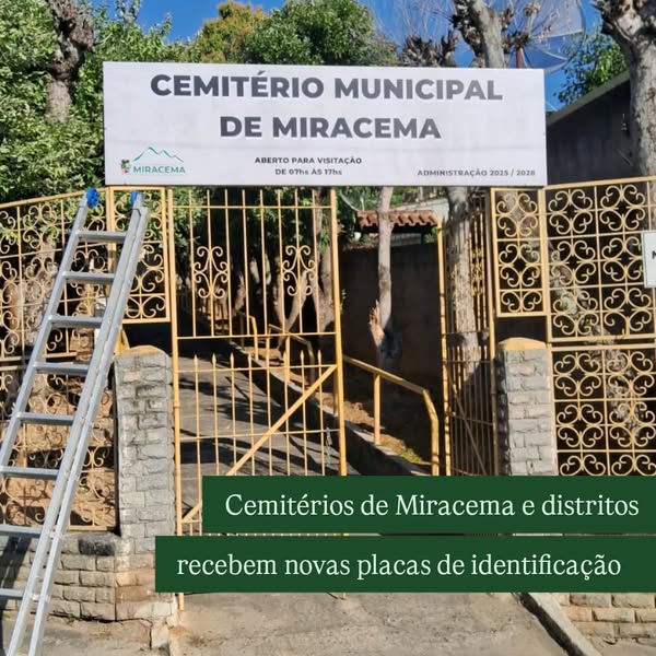 Pensando nisso, a Prefeitura de Miracema instalou novas placas de identificação em todos esses cemitérios. As antigas estavam deterioradas, com informações apagadas e difíceis de ler. Era preciso melhorar, e foi exatamente isso que fizemos.
