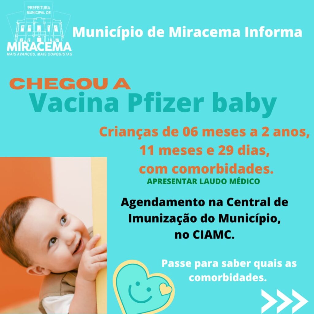 A Prefeitura Municipal de Miracema, através da Secretaria de Saúde, informa que o município dará início à vacinação contra a COVID-19 em bebês.