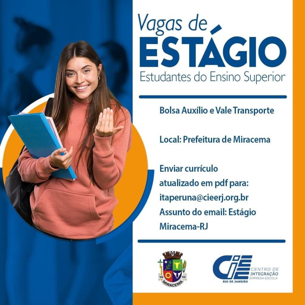 O CIEE está com inscrições abertas para o processo seletivo simplificado visando selecionar 53 estagiários para a Prefeitura de Miracema.